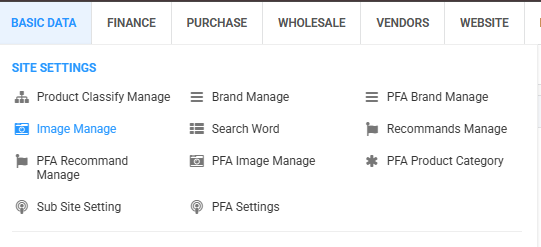 The Image Manage feature under the Basic Data tab allows you to store, organize, and manage image files with ease. This tool is especially helpful for maintaining your brand visuals, product images, and other digital assets, all in one central location.