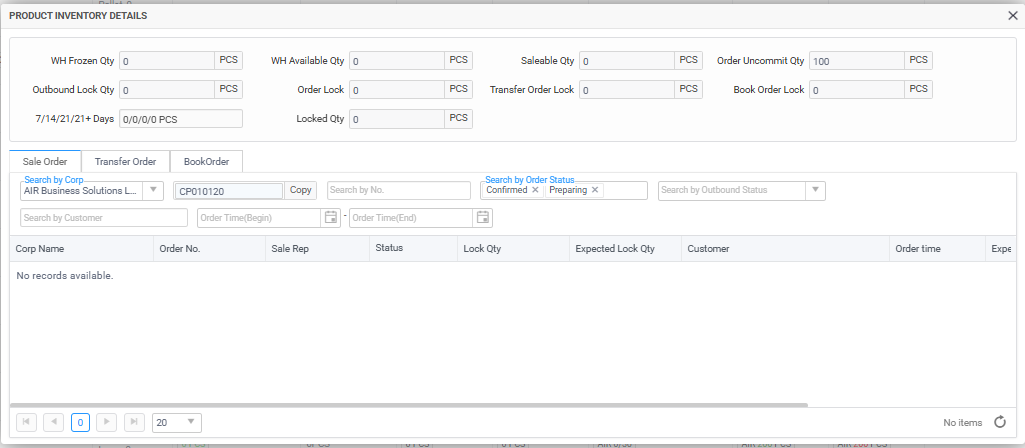 • Lock Quantities: View locked and uncommitted inventory quantities