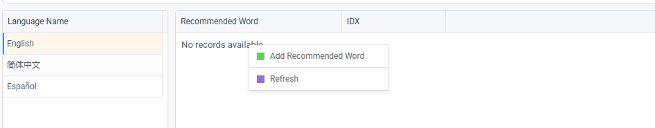 - The list of available languages and recommended words will be displayed