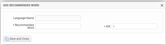 Details Required When Adding a Recommended Word #