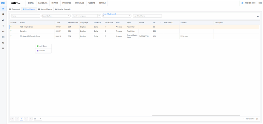 - Name – The shop’s display name (e.g., POS Simple Shop, Samples).