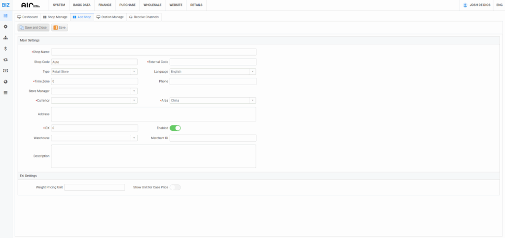 - Type – Defines the shop type (Retail Store, External Retail Store, etc.).