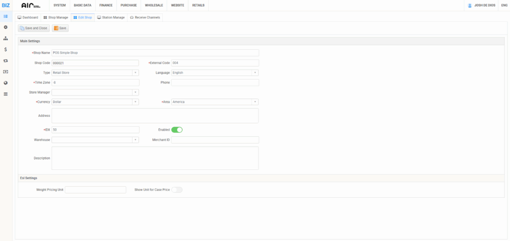 - Type – Defines the shop type (e.g., Retail Store, Online Store).