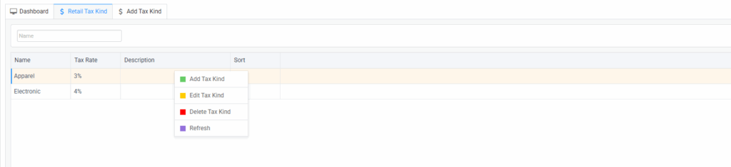 The “Retail Tax Kind” feature is essential for businesses to maintain a clear and organized tax structure within their retail operations. By easily adding, editing, or deleting tax categories, businesses can ensure that tax calculations are accurate and aligned with the applicable regulations. Whether you are managing multiple tax types or adjusting the tax rates for specific products, this feature provides the flexibility needed to keep your retail taxes streamlined and compliant.