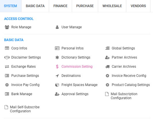 The Commission Settings system allows businesses to configure commission structures for both invoices and products. By defining these settings, companies can streamline commission payments and ensure accurate compensation for agents or partners.