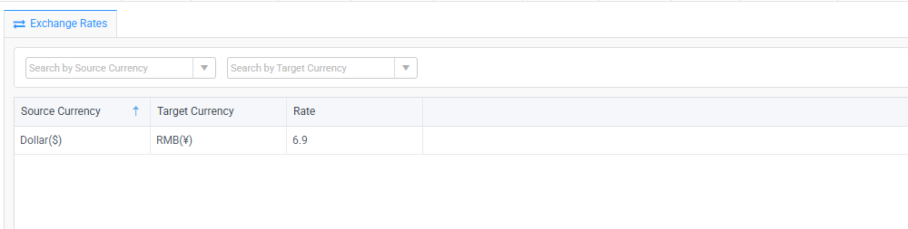 - Rate: Enter the exchange rate between the source and target currencies (e.g., 6.9).