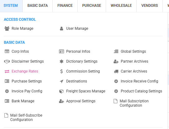 - Navigate to System > Exchange Rates under the Basic Data section.