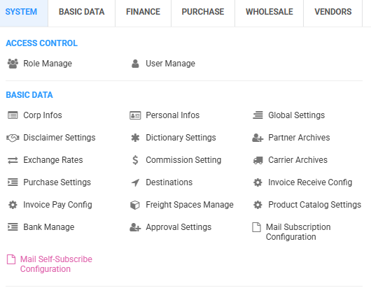 - Under Basic Data, click on Mail Self-Subscribe Configuration.