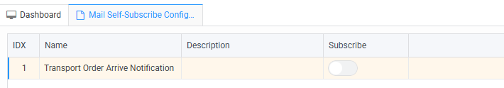 - Use the toggle button under the Subscribe column to enable or disable specific notifications, such as the Transport Order Arrive Notification.