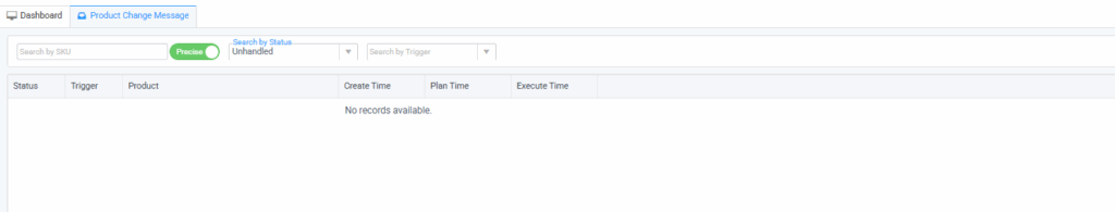 - Search and Filter: Use the search options to filter by SKU, Status, Trigger, or other criteria to find specific product change messages.
