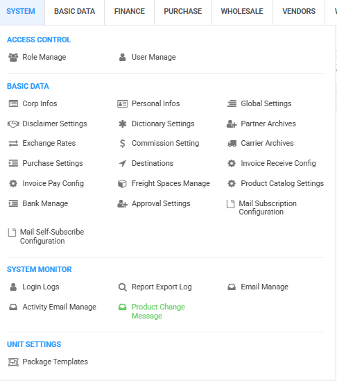 - Select Product Change Message: Under System Monitoring, click on Product Change Message.