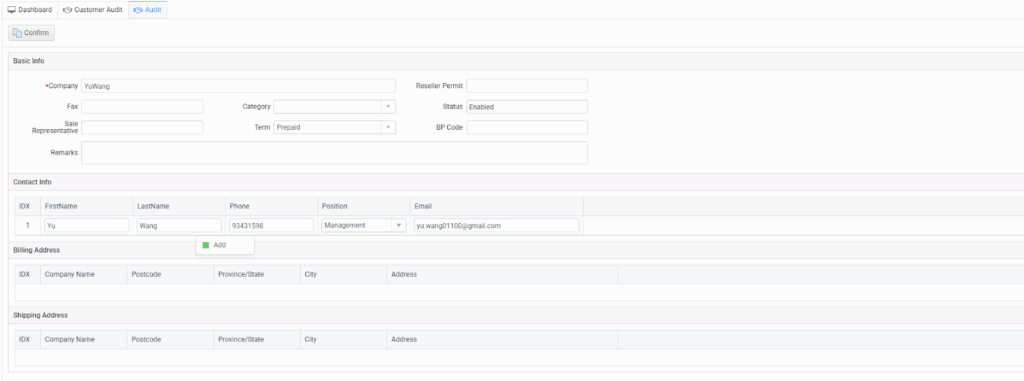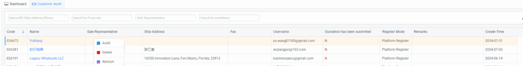 The “Customer Audit” module provides a comprehensive view of customer registration details and allows administrators to review, edit, or remove customer accounts during the platform onboarding process. This feature plays a key role in validating customer information and ensuring quality control before full account activation.