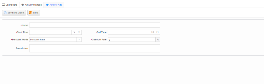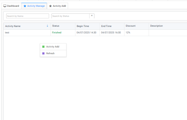 This allows for precise control over the promotions and ensures that all time-based campaigns are executed effectively.The Activity Manage tab gives you the tools to run time-based promotions, monitor campaign success, and maintain clear sales activity records. Whether it’s a flash sale or a scheduled discount campaign, everything is easily managed and tracked within the Wholesale system. Keep your operations running smoothly with organized and impactful activity planning.
