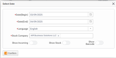 - Enable toggles: Show Incoming, Show Stock, Show Barcode
