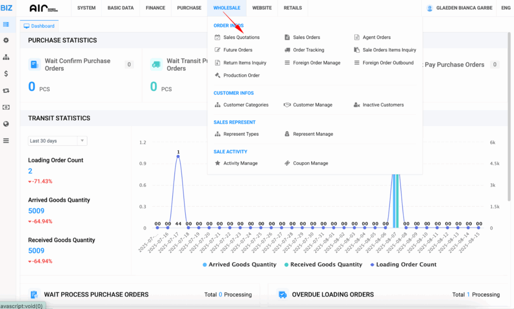 Step 1: Go to Wholesale → Sales Quotations. #