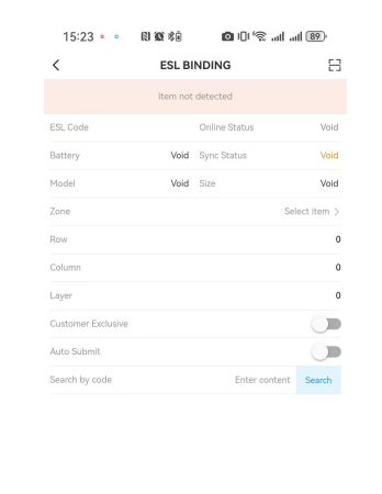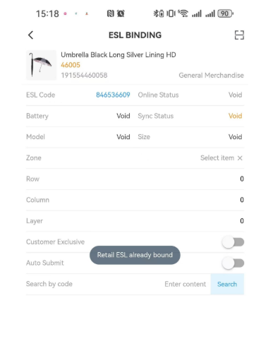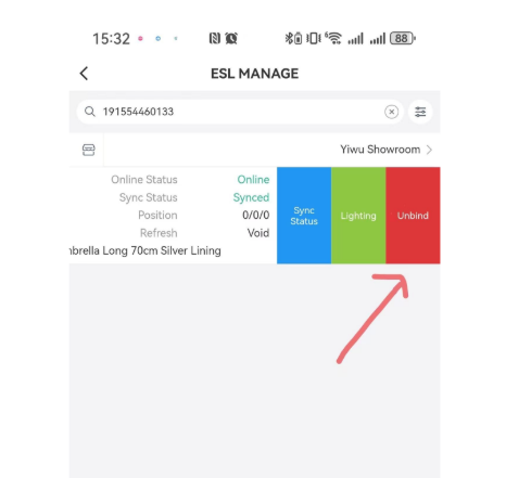 Open ESL manage, scan the ESL code, and unbind this ESL. #