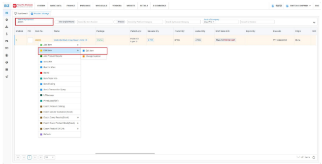 Solution: Go to “Product Manage” on the Biz website to check the product code and verify if the product information is correct. If item # is wrong or not exited, contact the POS system API personnel to solve the problem. #