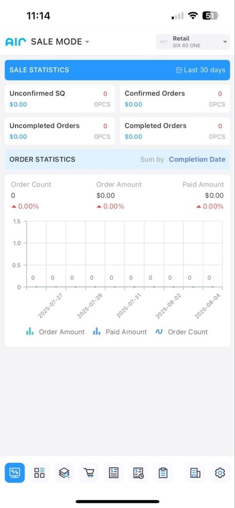 - Access your AirBiz mobile application. On top left, make sure it’s set on SALE MODE.